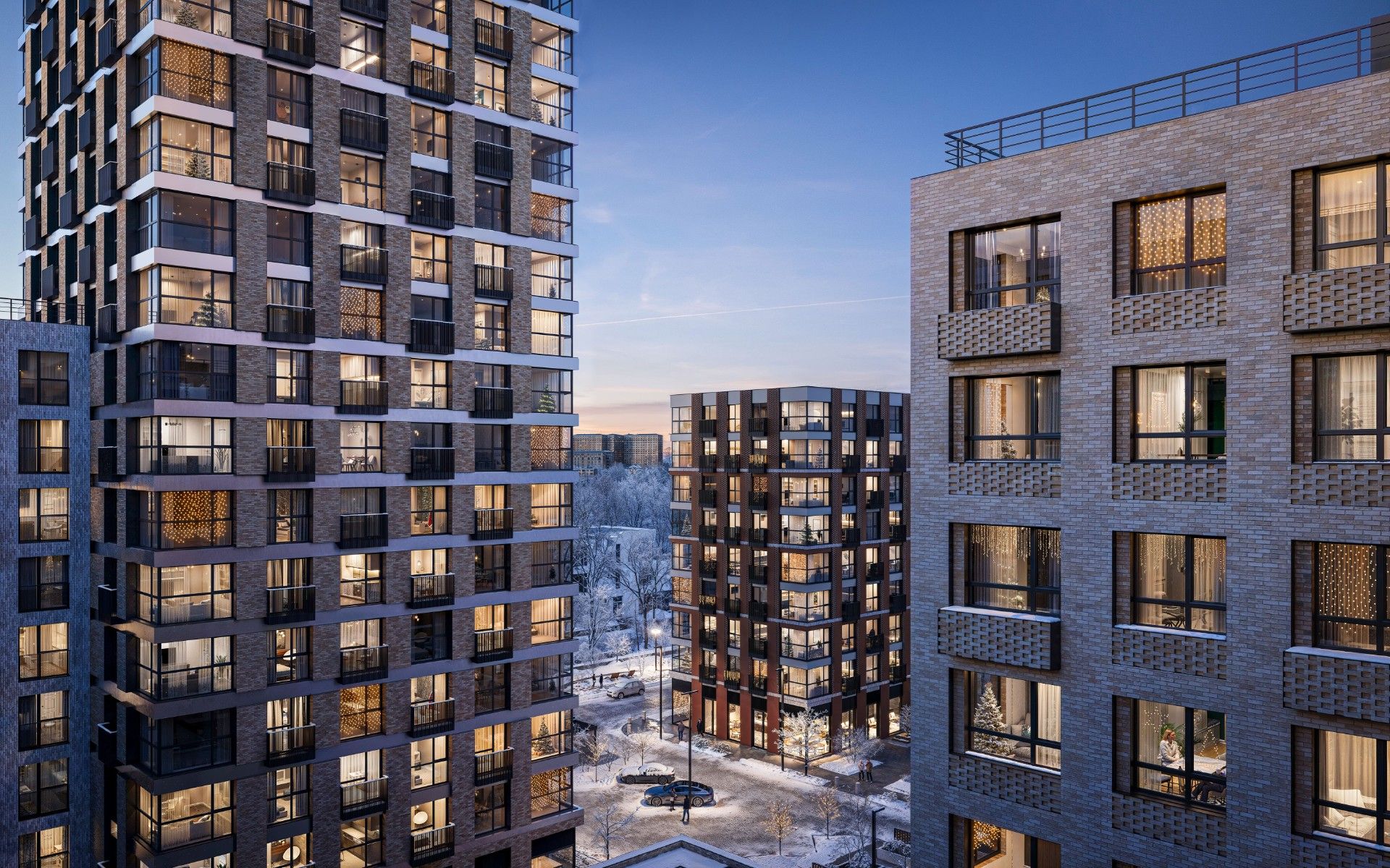 Концепция жилого квартала создана ведущими архитектурными бюро. Структуры малоэтажных кварталов дополняются высотными башнями-доминантами. Такой тип застройки позволил сформировать освещенную приватную территорию.